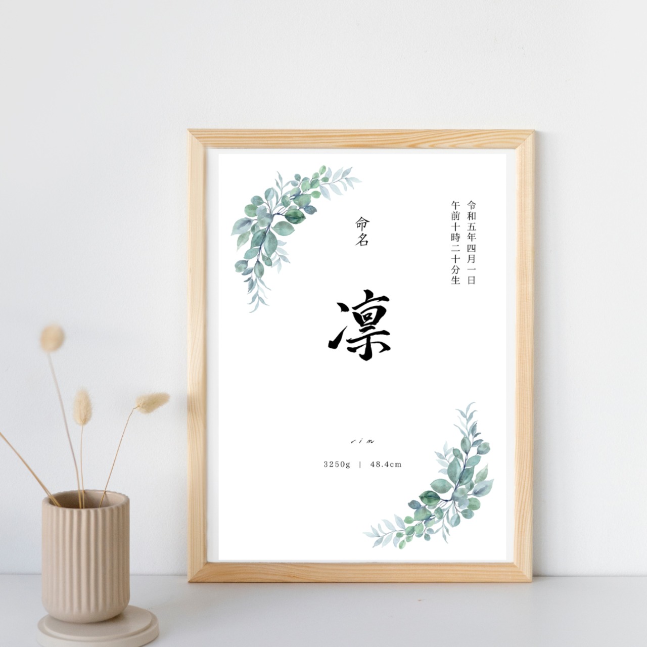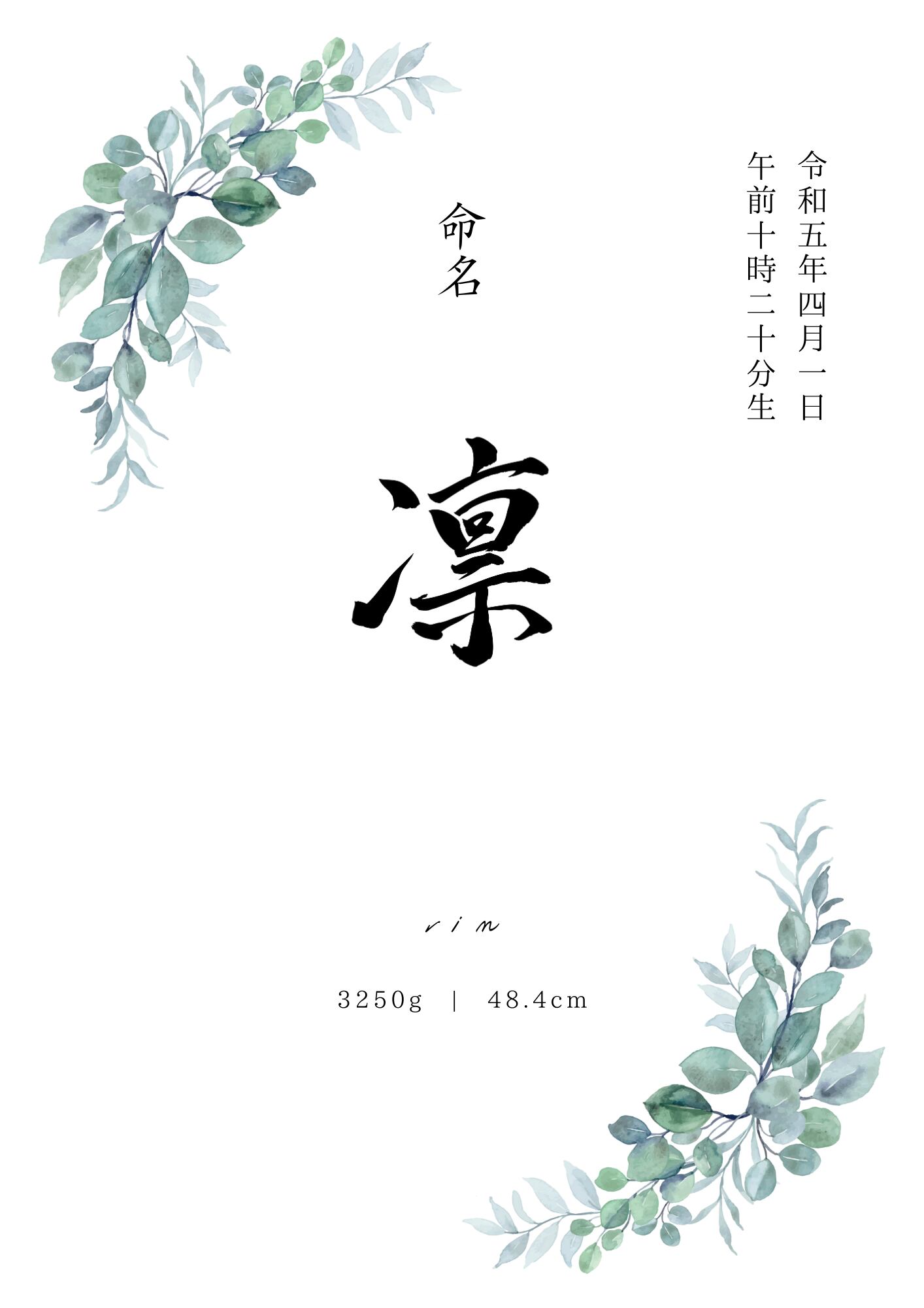 【セミオーダー】直筆文字入れのデジタル命名書(グリーン)